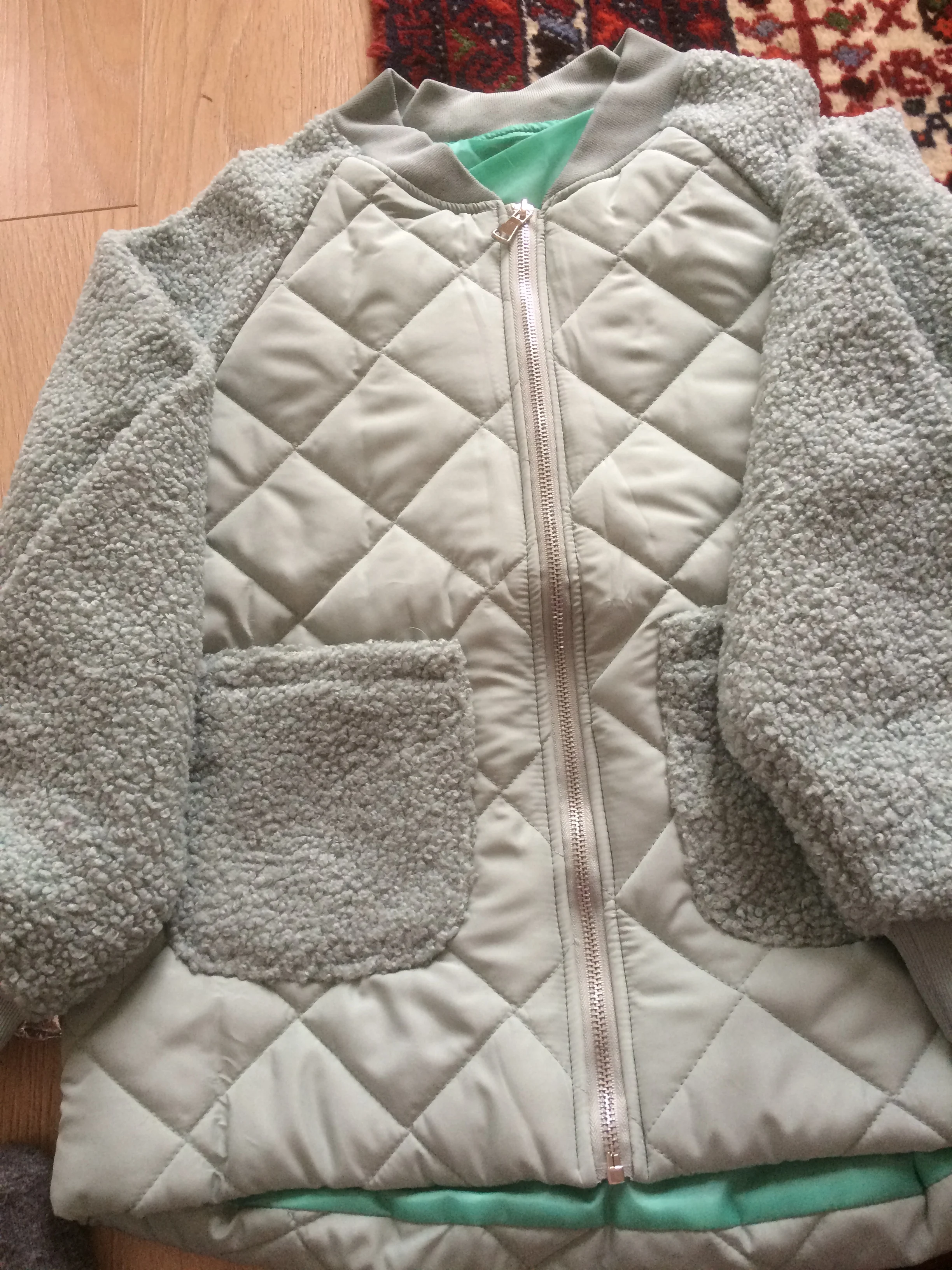 Куртка хорошенькая, рукава правда немного коротковаты, спасибо за подарок -носочки, доставка около двух месяцев была, в целом покупкой довольна.