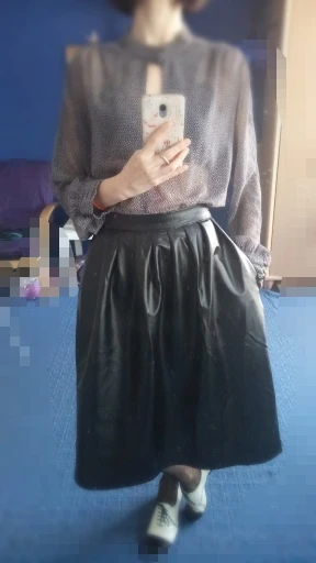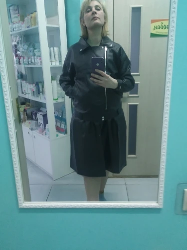 Качество отличное, кож., зам., мягкий, не блестит. Очень жаль, но талию 68см.,узуовато....