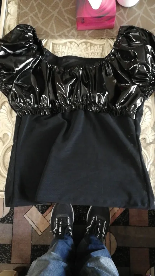 Женская футболка из ПВХ и латекса, вечерние экзотические сетчатые топы из искусственной кожи в стиле панк, готика, черный цвет, для клуба, 2022