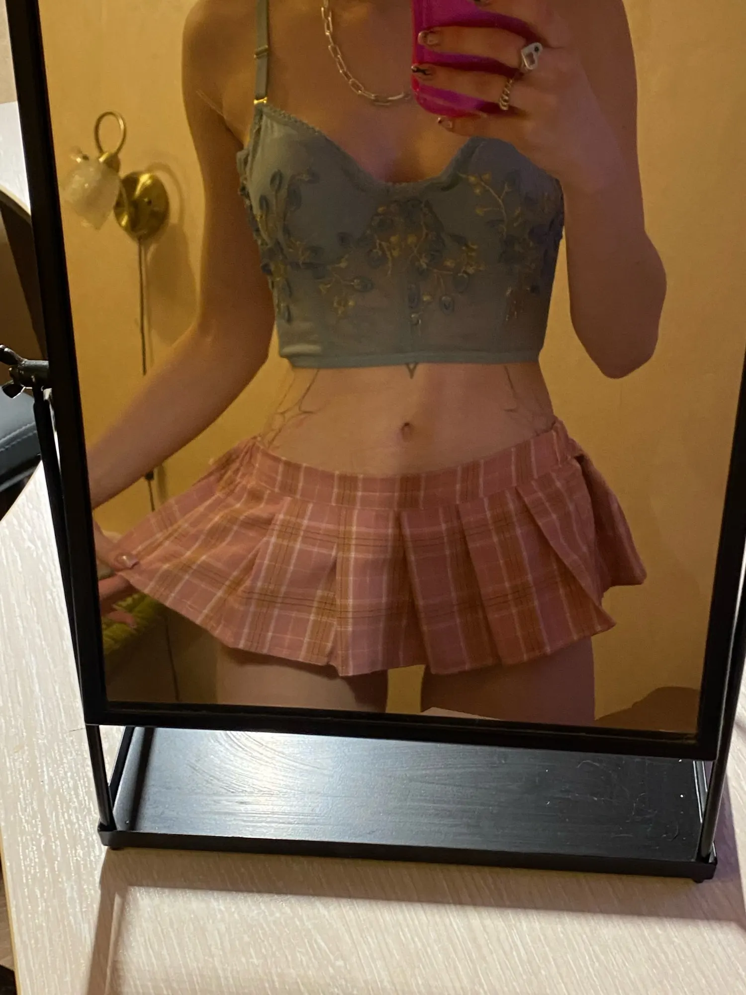 Прикольная юбка, выглядит как игрушечная. Сшита ровно. Ткань полиамид + спандекс. Тянется, комфортно сидит на попе с объемом 100 см. Короткая, всё видно, но для этого она и нужна. Доставка 18 дней в СПб.