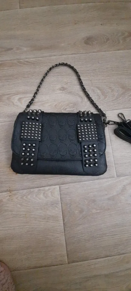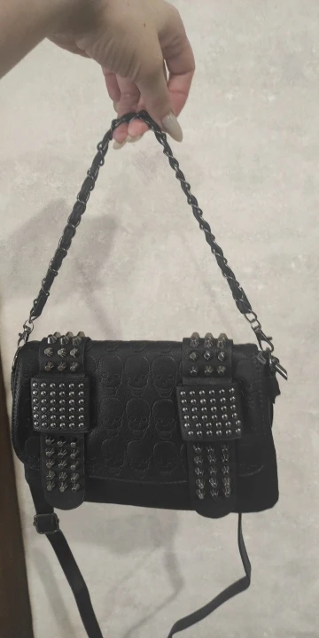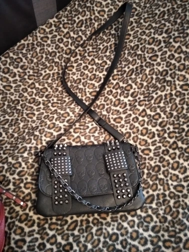 Женская кожаная сумка-мессенджер Yogodlns, черная винтажная сумка-мессенджер с заклепками и черепами, сумка-мессенджер