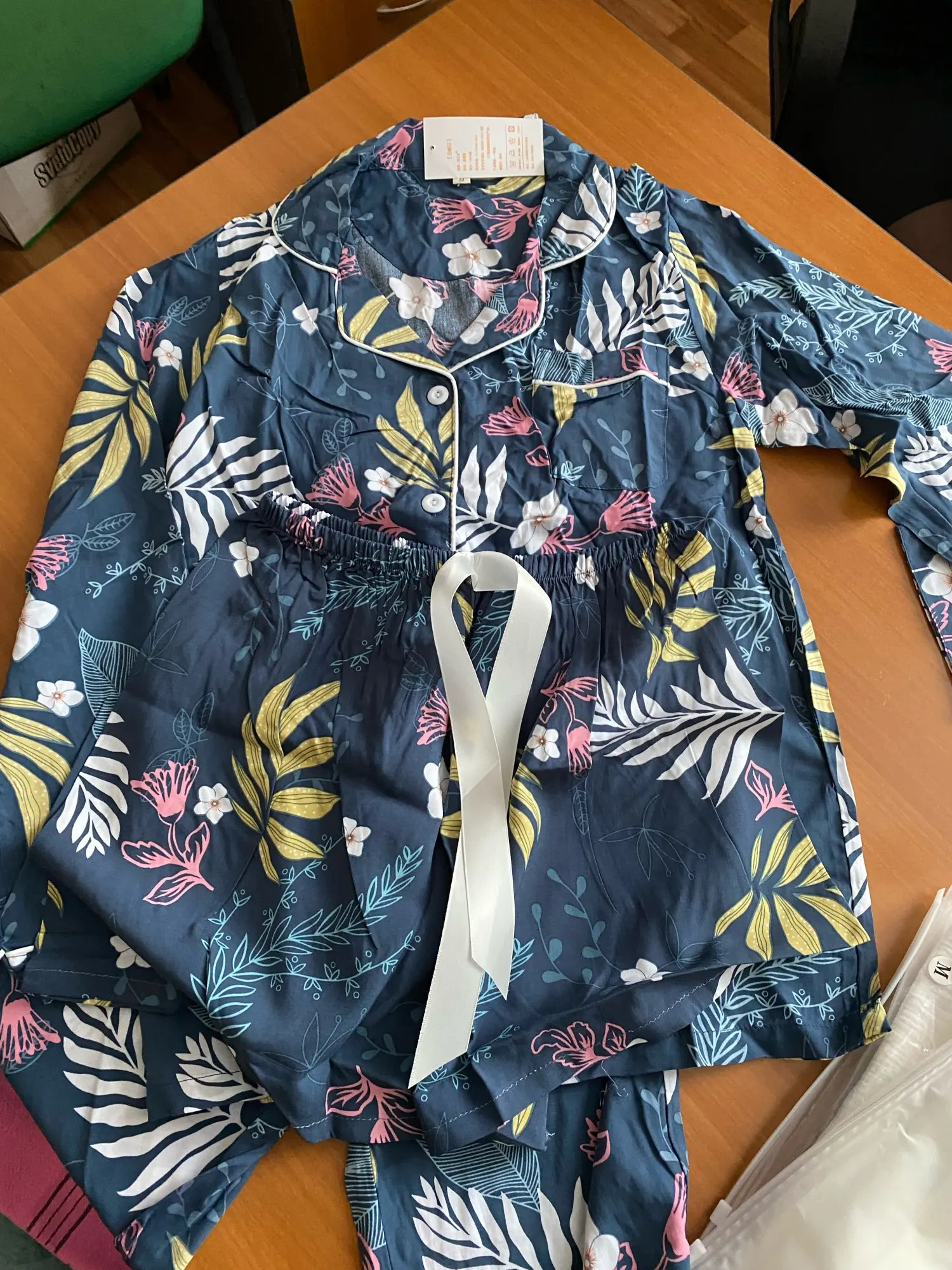Пижамкой очень довольна! ждала в Польшу меньше месяца,пришла вместе с другими заказами. Ткань - хлопок, очень приятная к телу. на параметры 90-76-101 взяла размер xl и не прогадала. Сидит свободненько,как я хотела. Но на размер меньше уже была бы маловата