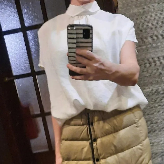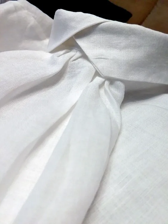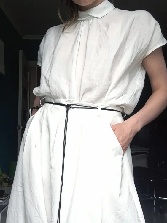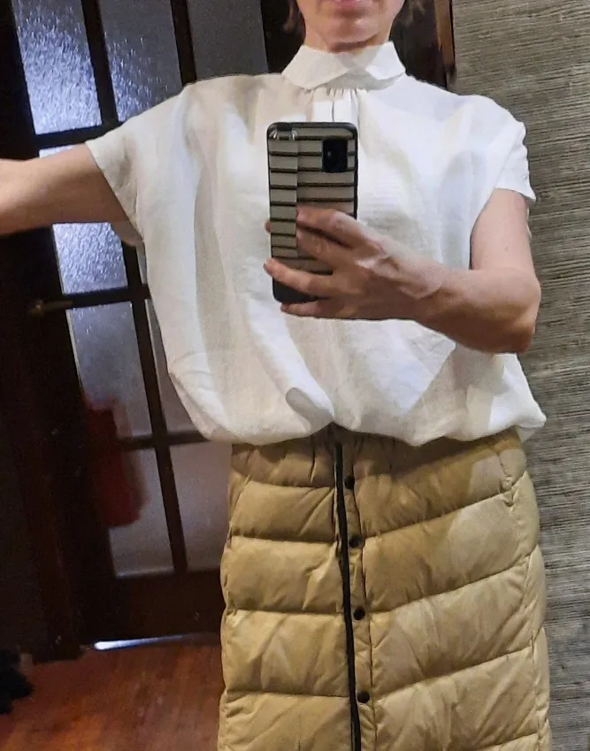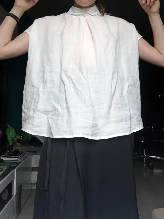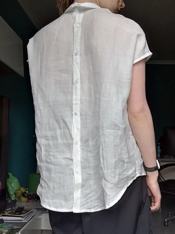 Посылка пришла довольно быстро, примерно через две недели. Упаковка обычный зип-пакет. Блузка очень понравилась выглядит как на картинке, ткань похоже действительно лён, хотя я не эксперт. Ткань будто накрахмаленая, чуть шероховатая на ощупь, посмотрим как будет после стирки. Пошив аккуратный, пуговицы простые, симпатичные, возможно поменяю их на какие-то более экстравагантные. Мои параметры плечи 40см, 88см-74см-98см, рост 163см, вес 58кг, фигура груша. Как сидит видно на фото, ткань сильно просвечивает поэтому надо тщательно подбирать нижнее белье. Кстати штанишки тоже из этого магазина, но к сожалению их больше нет в наличии. Рекомендую. После эксплуатации, напишу дополнительно.