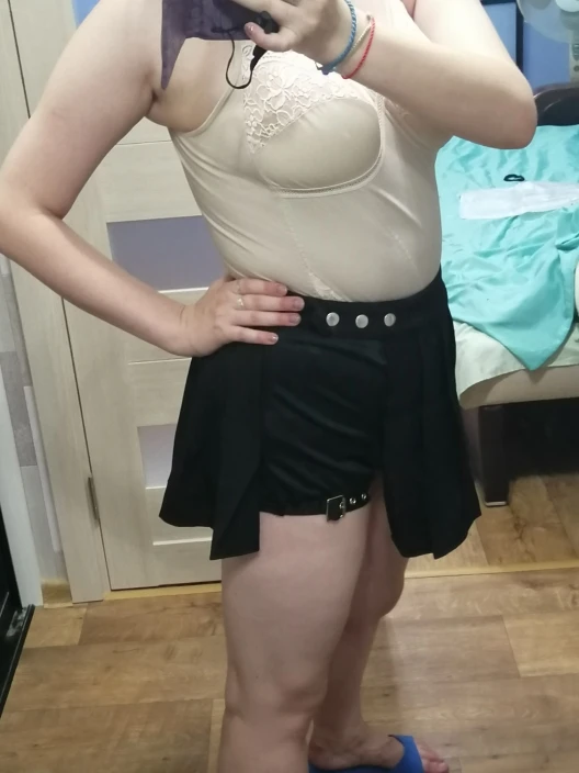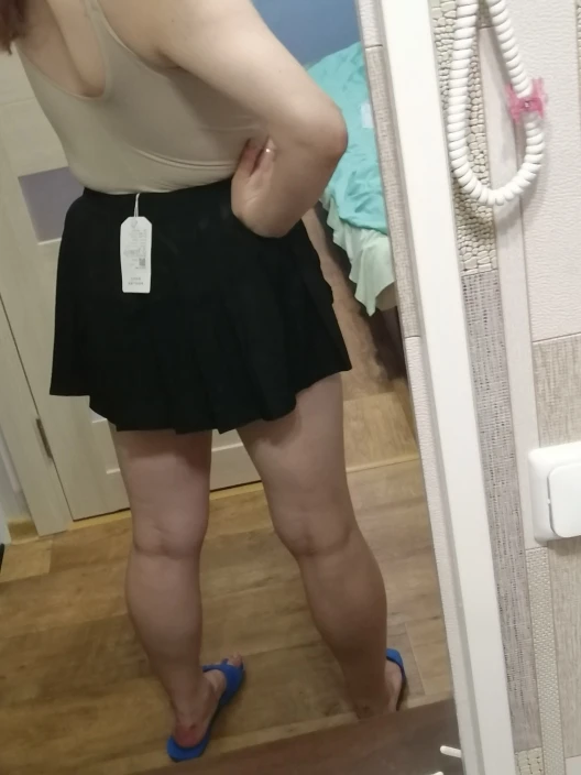 смело берите тот размер, что и носите постоянно. не знаю как, но у меня совпадали параметры с М, но юбка оказалась даже чутка велика(хотя боялась, что будет мала и вообще надо было брать л). ткань приятна, юбка и шорты довольно короткие. думала будет пояс повыше, но опять же, юбка мне великовата и висит. пришла быстро, за 18 дней