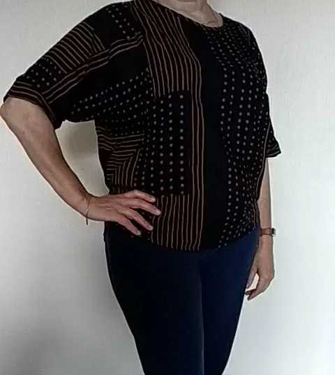 Заказ в Петербург пришёл быстро: чуть более 2-х недель. Футболка в целом понравилась, буду носить, смотрится не плохо. Но в бёдрах (122 см) - в обтяжку. Можно подтянуть вверх, будет как с напуском. Ткань ХБ- очень тонкая (ситец) , на лето- прекрасно, тело дышит. При стирке линяет (фото вставила), усадку не дала. По горловине на швах есть ниточки, но не критично, можно подрезать. Для своих денег- замечательно. Продавца рекомендую. Если хотите свободной посадки в бёдрах, как на картинке, то лучше брать на размер не больше 52 (росс), или если ОБ не более 110.