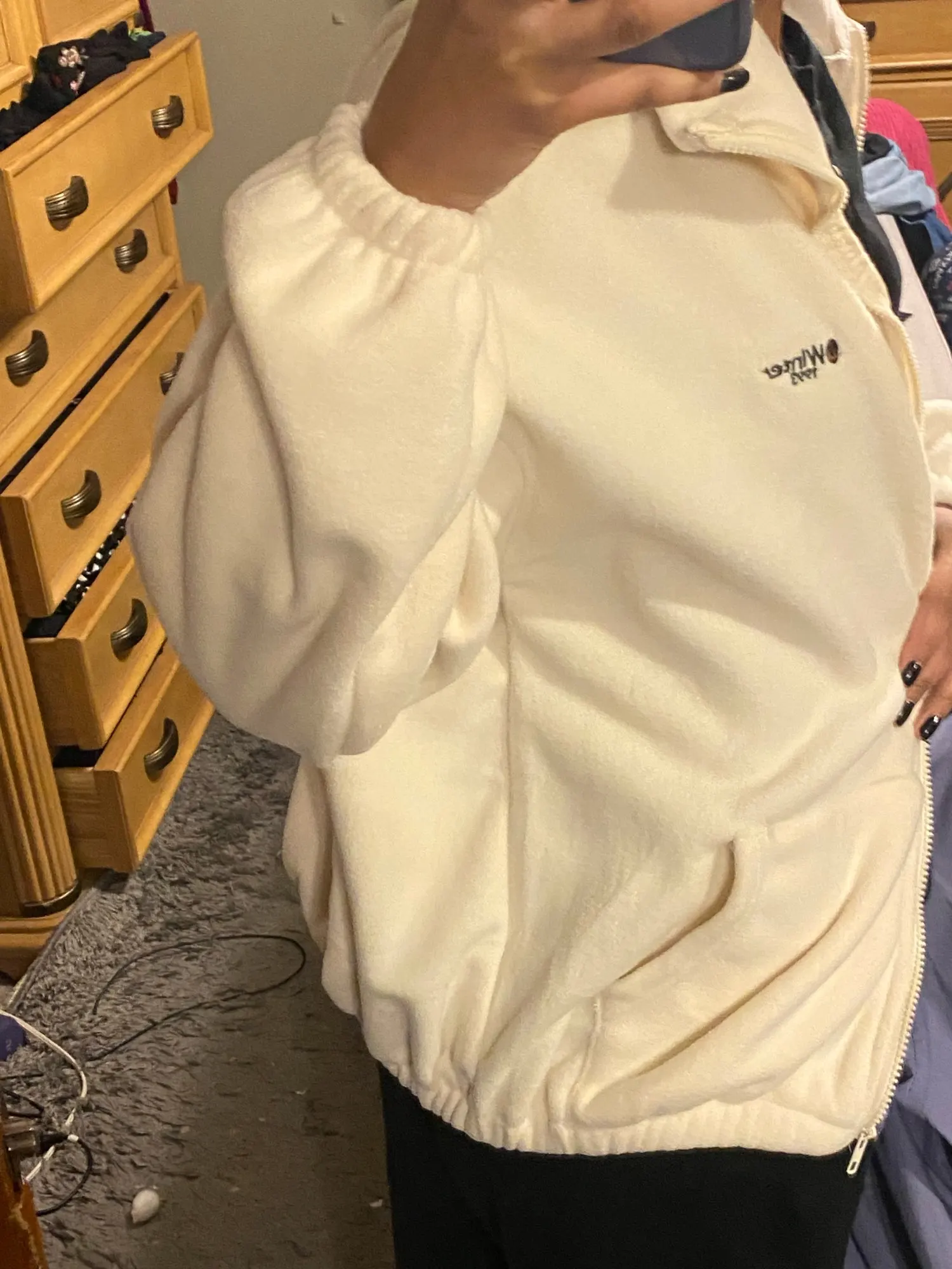 чудесная кофта! мой рост 168, села точно как я хотела. цвет соответствует фотографии. тёплая, флисовая. молния работает, нитки не торчат. единственное, если у вас большая ass, вам может быть неудобно, тк снизу резинка.