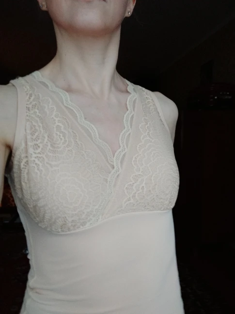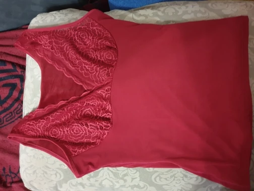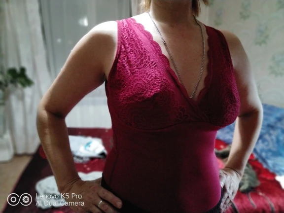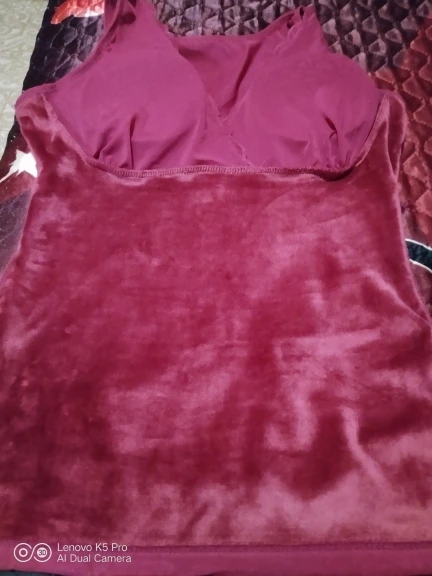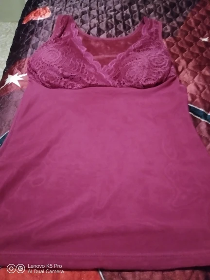 Отличная маечка, то что я ожидала. Внутри плотный бархат.Я очень люблю тепло, так что она как раз для меня.Всё как на фото,и цвет и пошив. Чашечки прилагаются,я их сразу вставила, можно носить без бюстгалтера. Красиво смотрится.Я люблю посвободнее, так что у кого 50-й размер и любит свободную одежду, берите размер больше 70кг. Товаром довольна, всем советую.