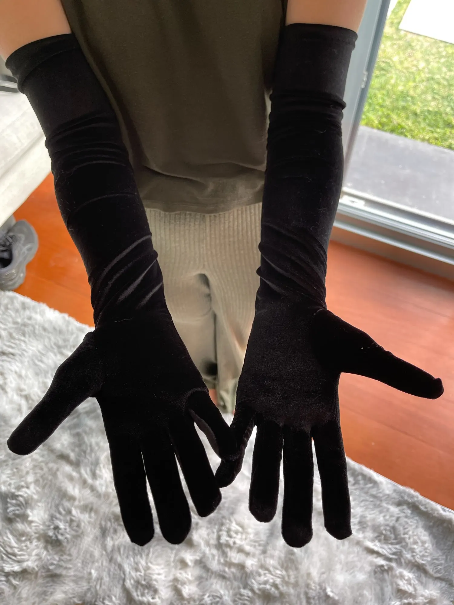 Женские бархатные однотонные атласные тонкие перчатки, Длина 58 см, 1 пара
