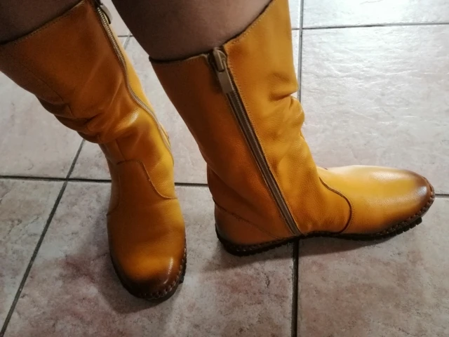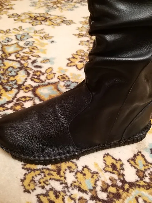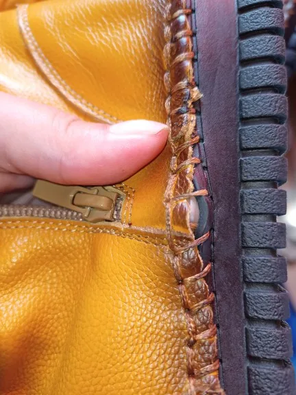 Сапоги классные, выглядят точно как на фото. Взяла размер 7 на российский 36,5. Согласна с предыдущими отзывами, что подошва прошита и проколы видно, у меня есть похожая обувь, в дождь ноги промокли. Нужно придумать как заклеить или закрыть эти дырочки