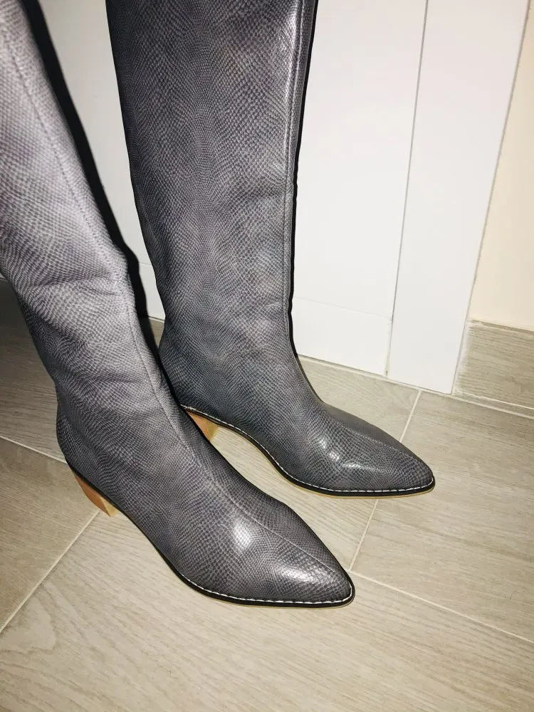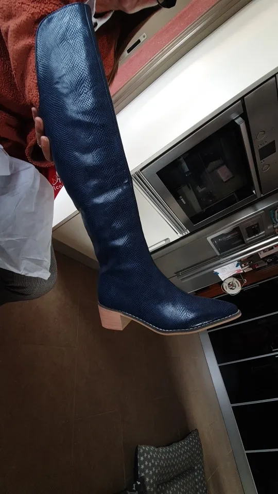 На свой размер 25, заказала 26, так как не было отзывов. Оказались великоваты (нужно будет ещё стелька). Идут размер в размер. Выглядят точно, как на фото продавца! Голенище не узкое, широкое. Передняя часть сапога - выше колена. Не знаю, как будут в носке, но на вид - очень и очень приличные. Спасибо продавцу! Доставка быстрая, в течении 2 недель.