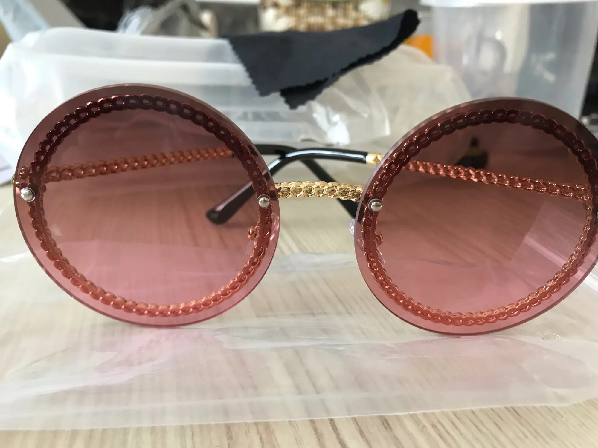 Женские и мужские круглые солнцезащитные очки QPeClou, металлические брендовые дизайнерские очки с цепочкой, черные очки, не входят в комплект, 2022