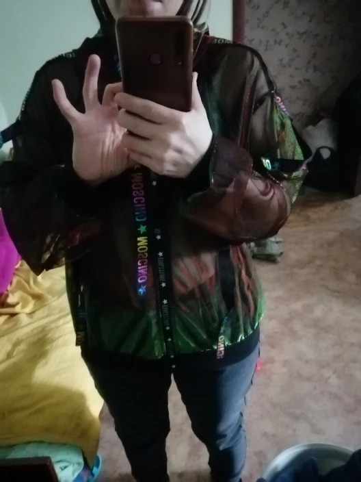 Доставка вовремя....курточка эффектная ,переливается сине-розовыми переливами ,но больше розовым ....Самое главное я влезла ...с моим бюстом 110 см ...мне куртка свободная ,но короткая по талию ,чуток подлиннее бы ,а так очень классная куртка ....мне очень понравилась ...