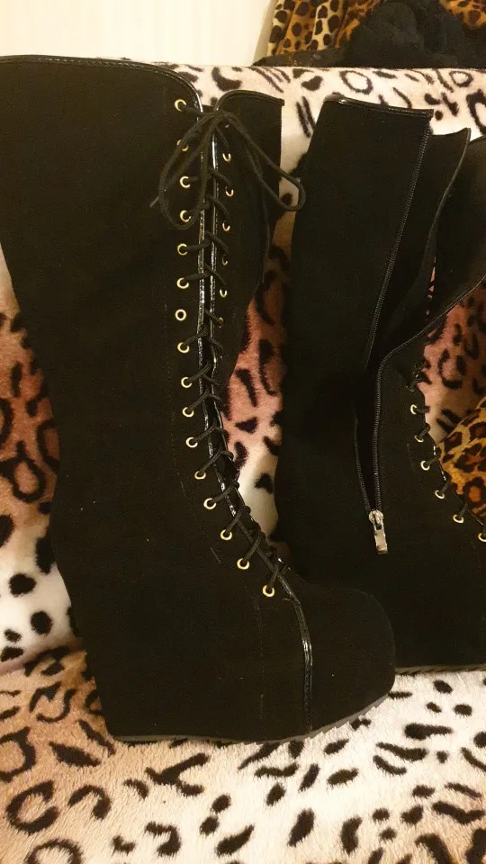 Ткань сапог как как бумага, каблук очень узкий неустойчивый.