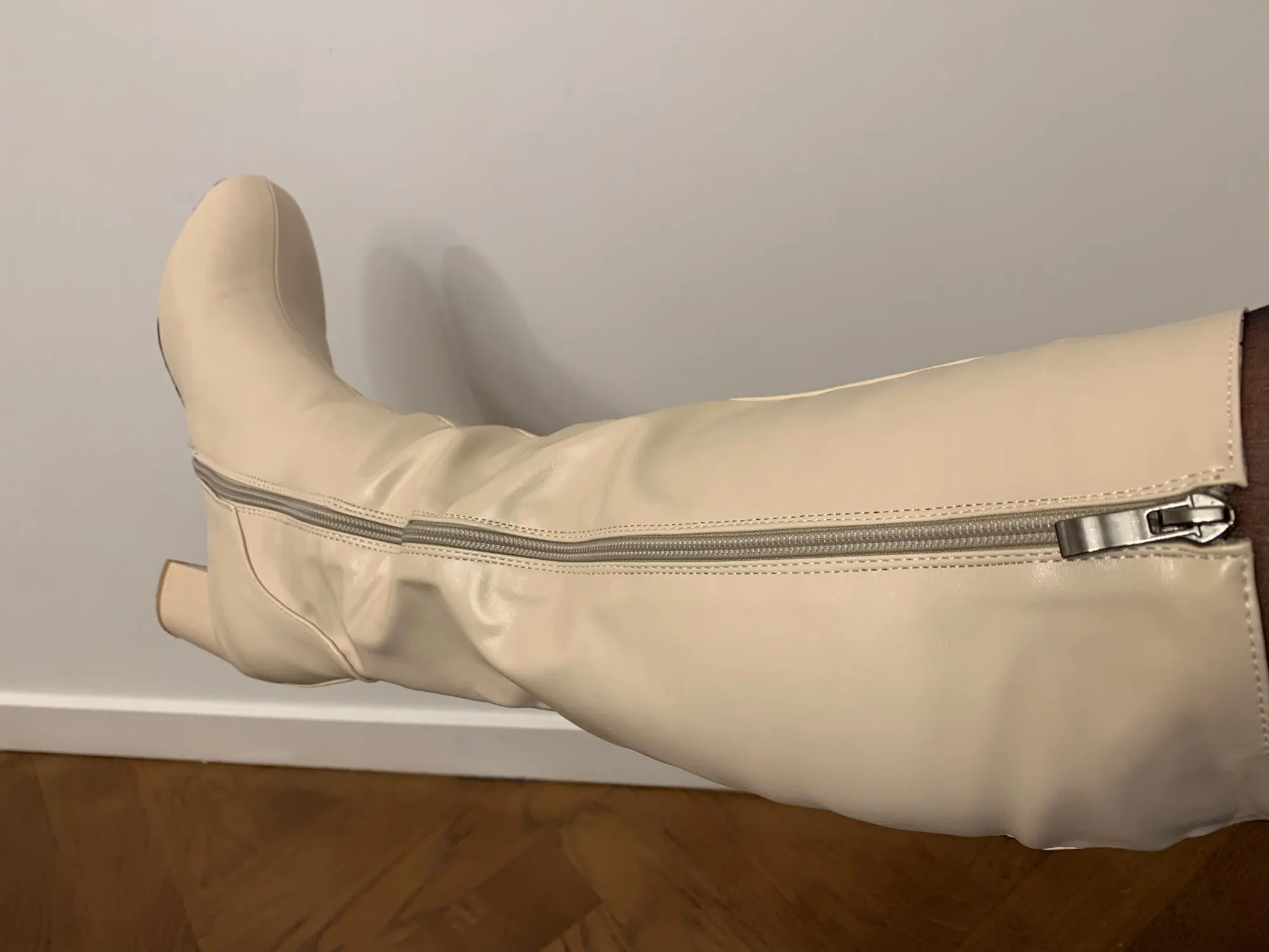 Товар соответствует картинке. (молочный беж). На 25,5 см взяла 41, большой конечно, с носочком носить придется, а там и так подстежка "чебурашка", так что только при холодной осени. Прибыли в МСК оч быстро. "кожа" грубовата и при сгибе (при доставке) , остались следы, которые визуально оч портят вид. Рекомендую продавцу отправлять НЕ СГИБАЯ сапоги, тогда на 5+ за такую цену. НО, девочки я еще не носила и возможно отзыв будет иным!!