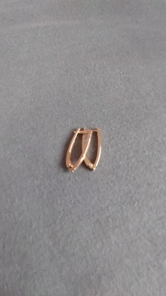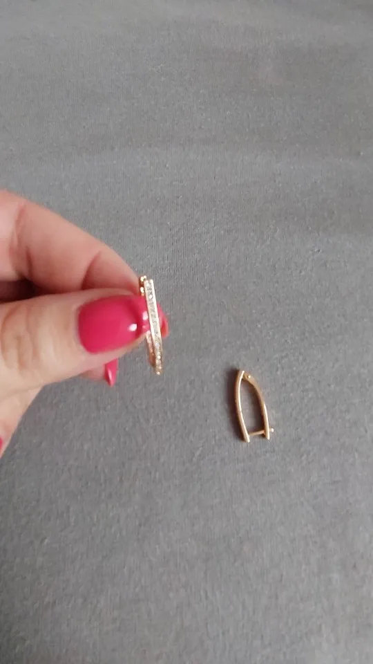 Серьги очень красивые. Похожи на золото. Застежка держит, но после каждого открывания, надо погибать душку, которая вставляется в ухо. Металл очень мягкий. Посмотрим на сколько хватит. На фото рядом с золотыми серьгами. Рекомендую.
