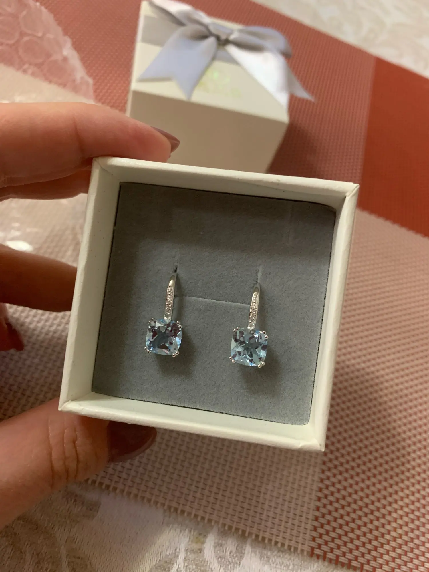 Очень красивые серьги, заказывала вместе с кольцом, прислали в коробочке и положили салфеточку для полировки. Милое и нежное украшение Рекомендую как подарок для юной девушки или для взрослой дамы. Все будут рады. Продавец отправил очень быстро, до Москвы дошло за 3 недели.