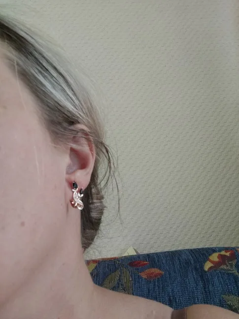 Серьги изумительные, не маленькие, камни ярче чем на моем фото, на широкую мочку, на узкую мочку можно одеть силиконовую заглушку, пришли очень быстро, спасибо