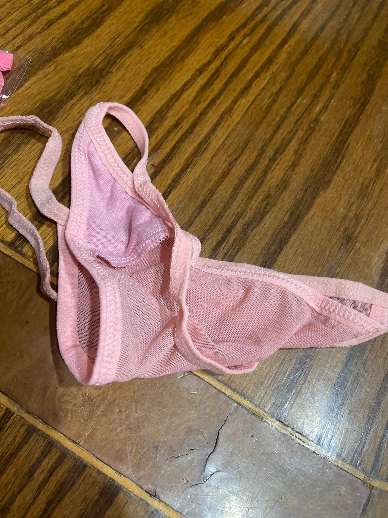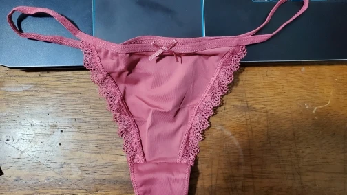 ничего нового не напишу, качество хорошее, цвет насыщенный, в бедрах размер м, скажем так, а вот ниточка сзади очень длинная, то есть на высокую посадку, думаю просто укоротить заднюю нитку и не придется делать перезаказ