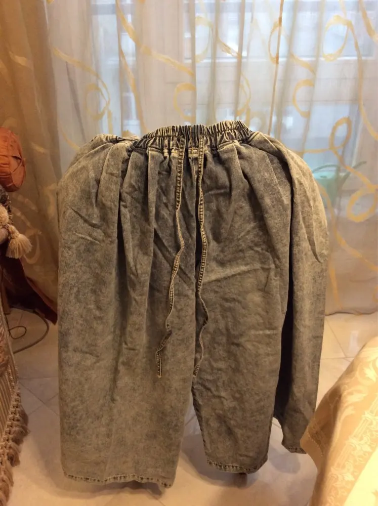 Женские свободные джинсовые брюки, повседневные однотонные винтажные брюки размера плюс с карманами и эластичным поясом, 2022
