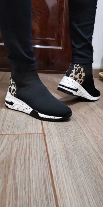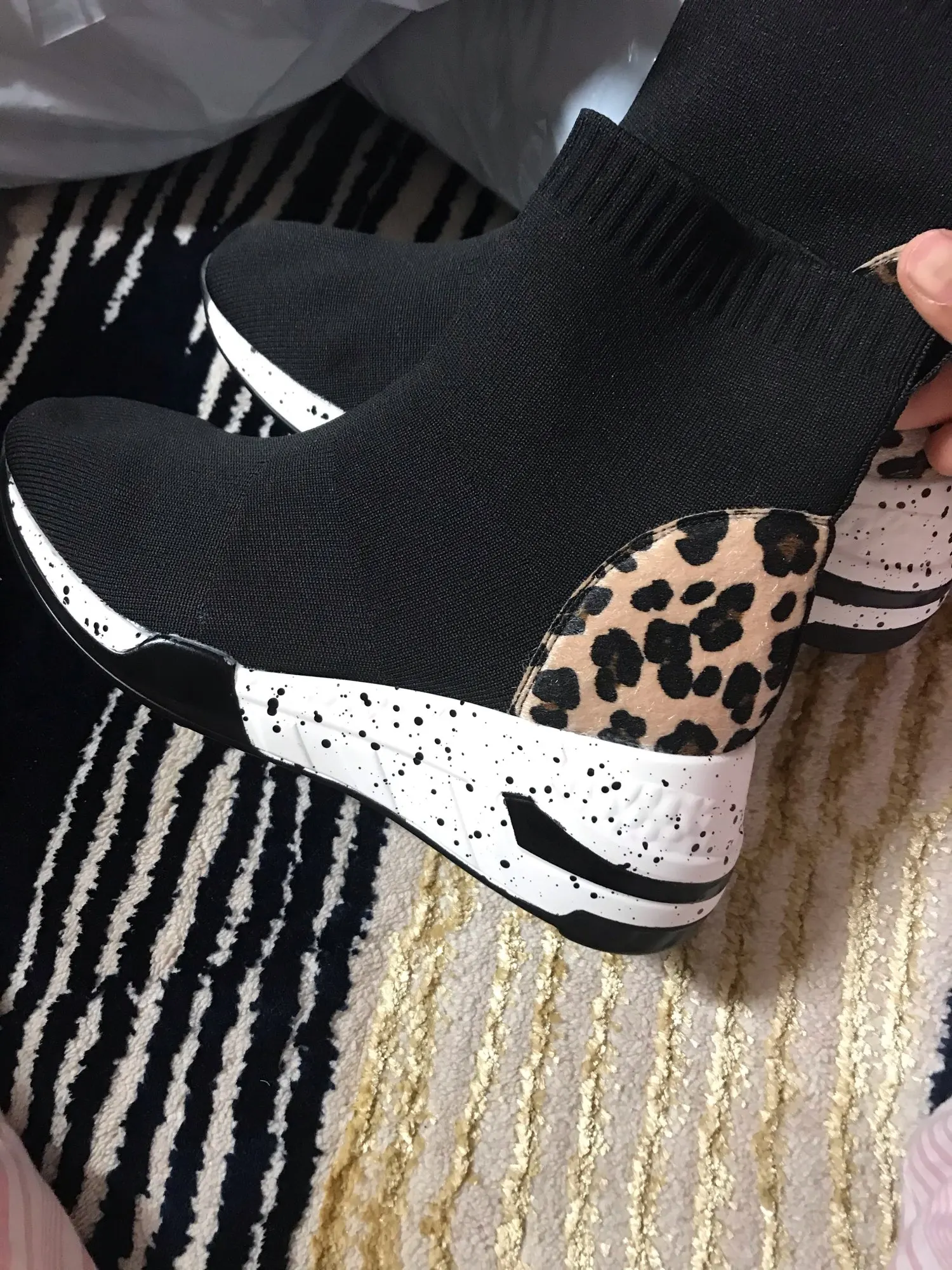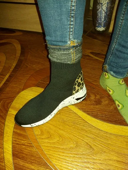 Женские высокие кроссовки на платформе, Повседневные вязаные носки, без застежки, с леопардовым принтом, брендовые дизайнерские