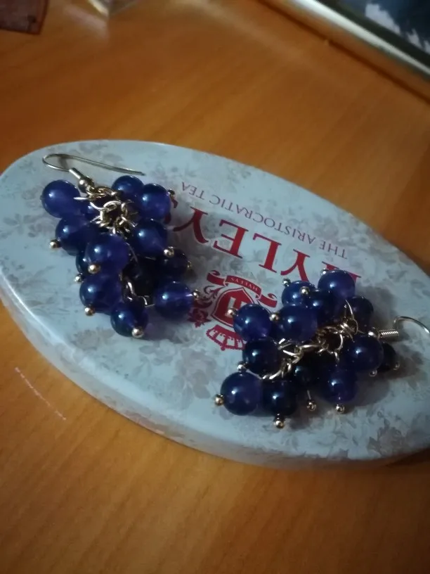 красивые серьги,смотрятся как гроздья винограда на ушах,на лето самое то с платьем,товар рекомендую и продавца конечно же тоже