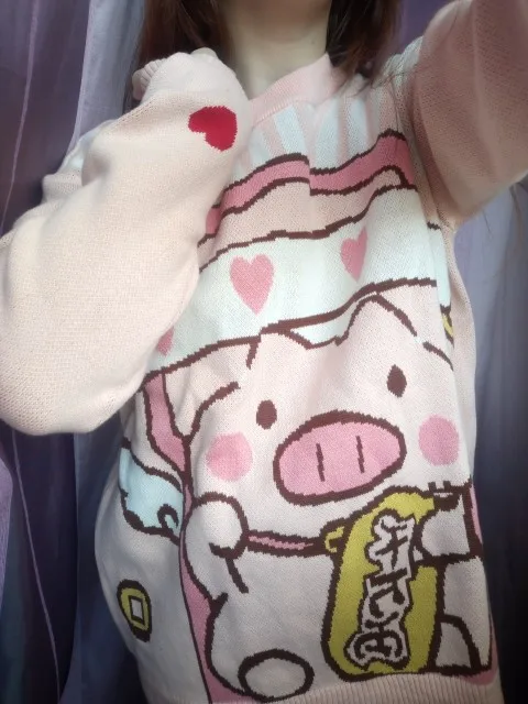 Женские вязаные свитера и пуловеры MERRY PRETTY с вышивкой свинки из мультфильма, зимний плотный теплый вязаный свитер для девочек, жаккардовый с...