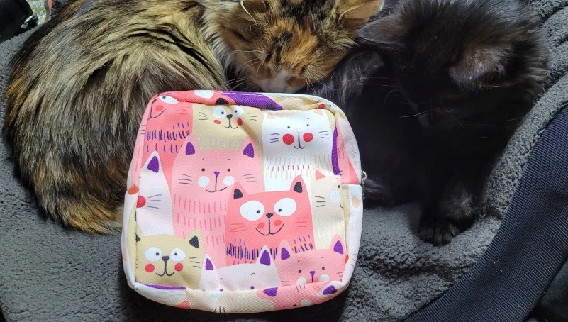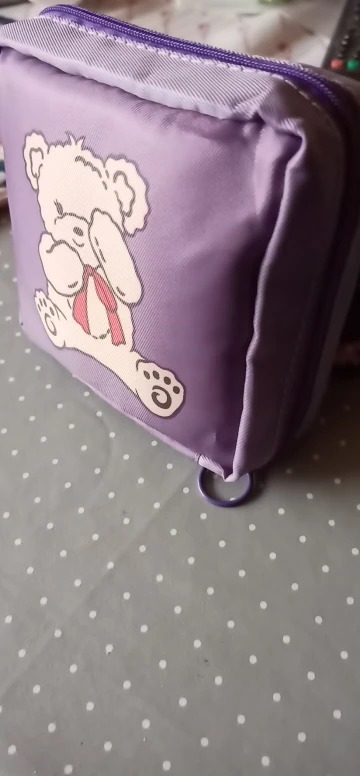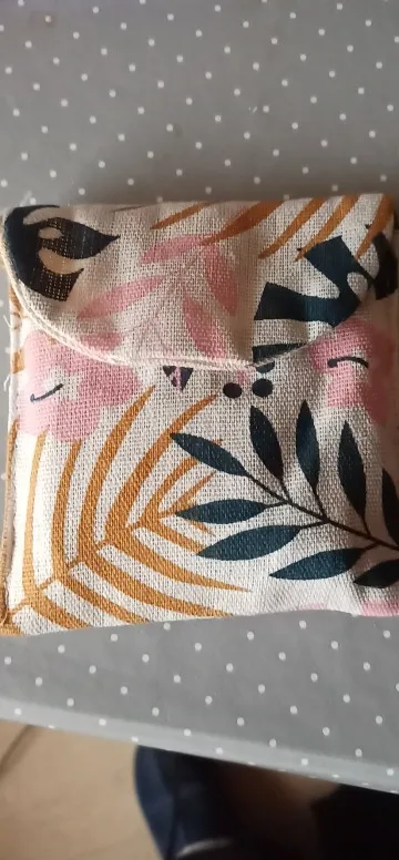 все, как на картинке. Хорошо сшита, довольно объемная. входит спокойно пачка прокладок, внутри небольшой кармашек.