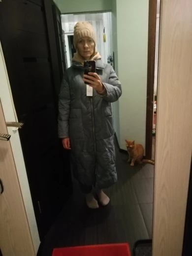 Отличный тонкий пуховик. Качество отличное. Рукава конечно загнуть как на фото нет возможности. Мой рост 161, мне длинный). При своём р-ре 42 заказала S. Заказом очень довольна!