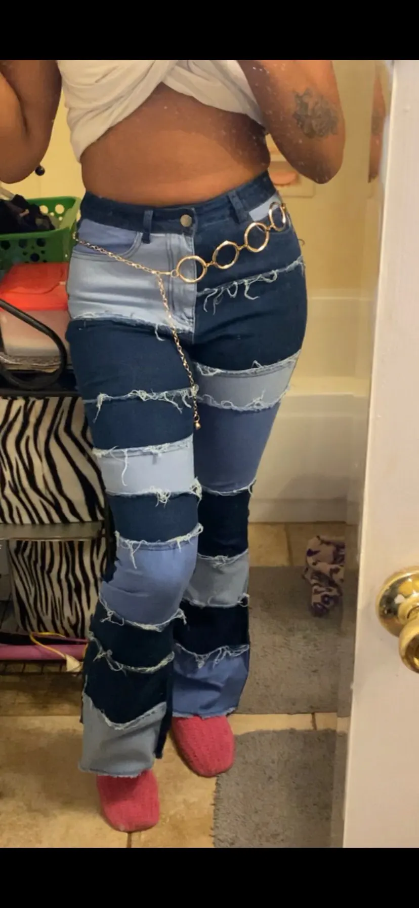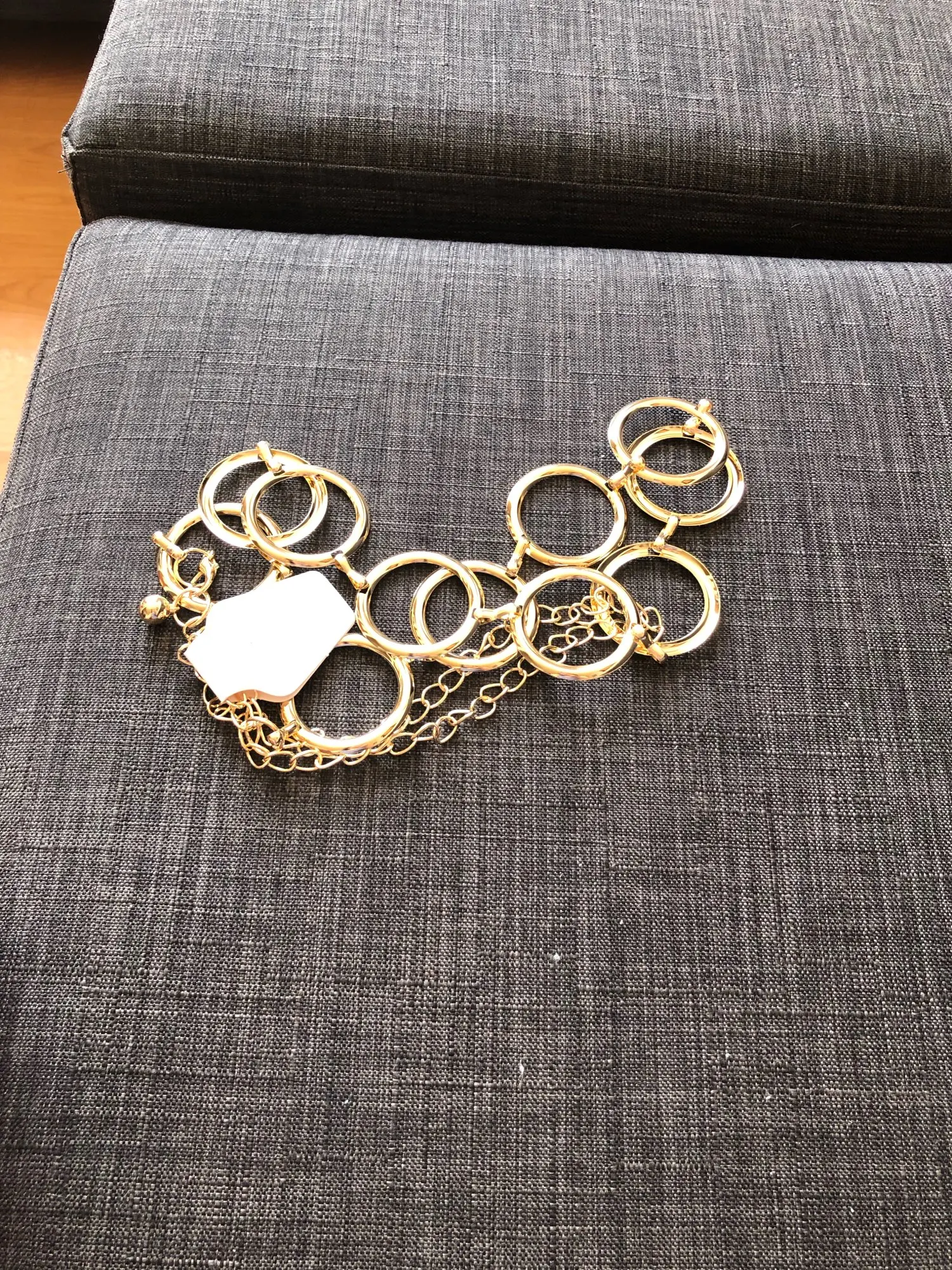 Очень красивый пояс, полностью соответствует описанию, гладкий, одежду не царапает. Единственное, что жаль - длина колечек у пояса всего 57 см, остальная длина - это цепочка. Уж не знаю, у кого сейчас такая узкая талия, на кого рассчитана такая короткая длина. Доставка в Москву 1.5 месяца