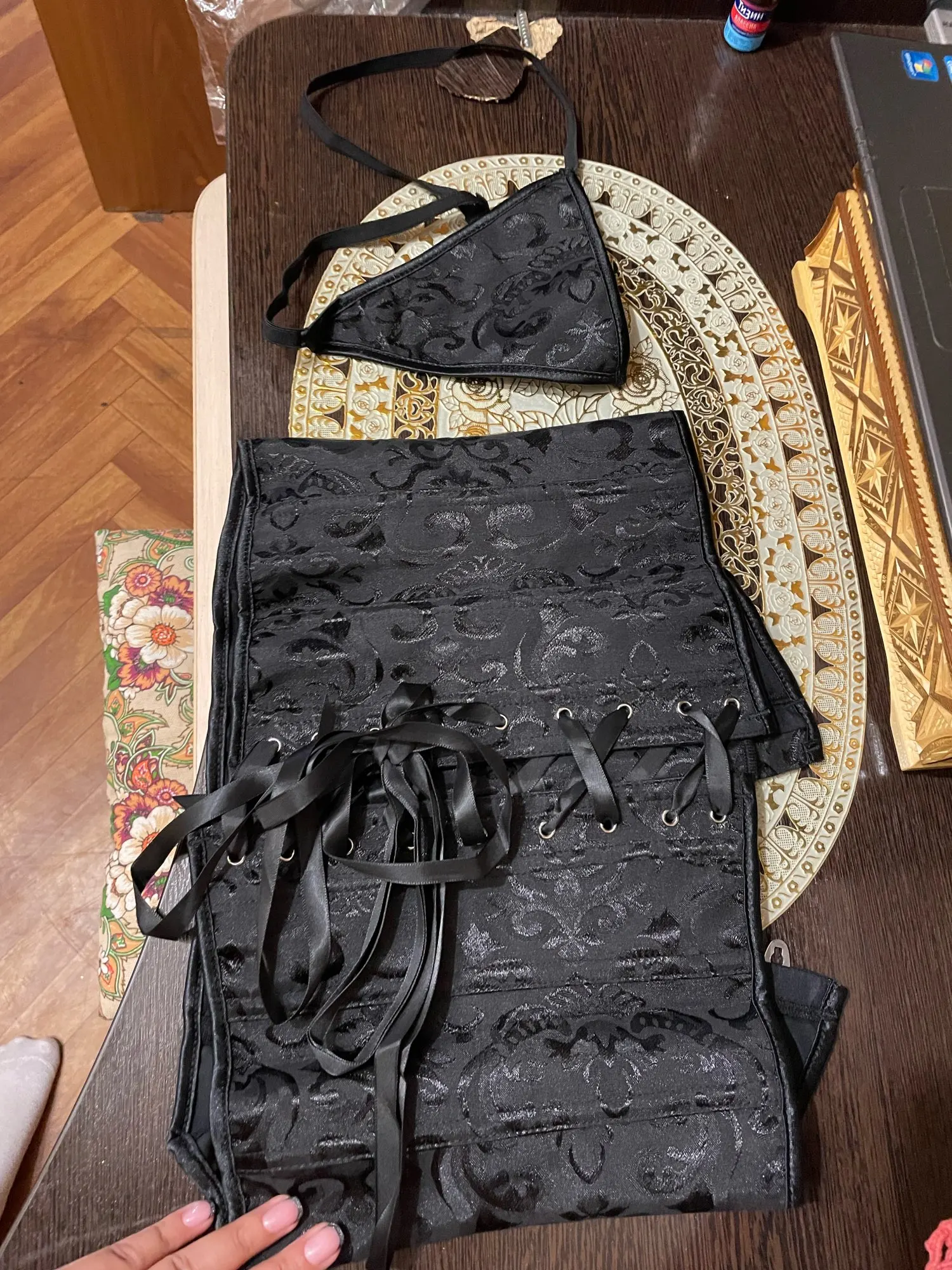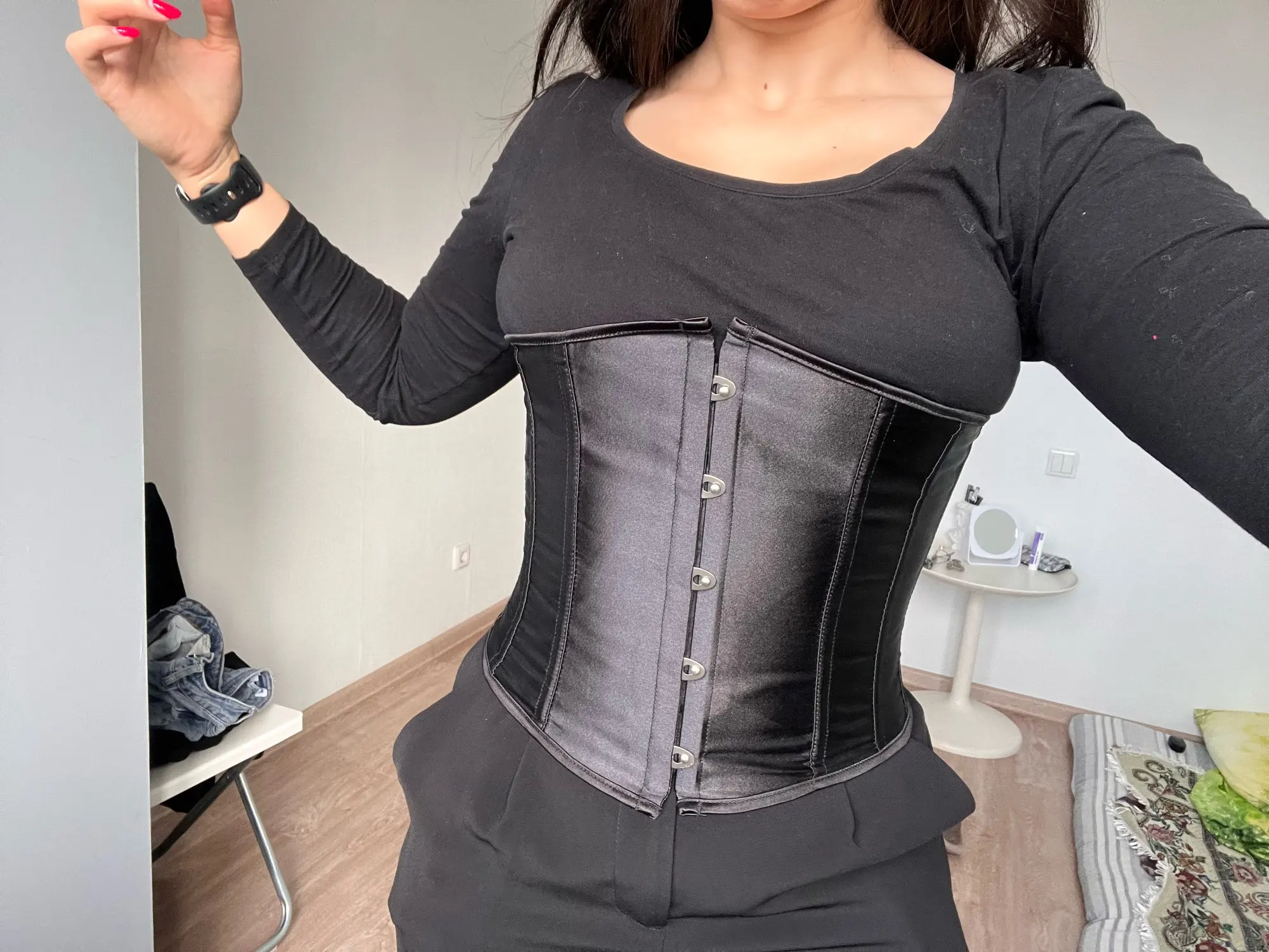 Корсет дошел чуть больше чем за месяц. Без запаха, без повреждений. Качество отличное. Корсет хорошо сидит и смотрится просто великолепно. Очень красивая и эстетичная вещь