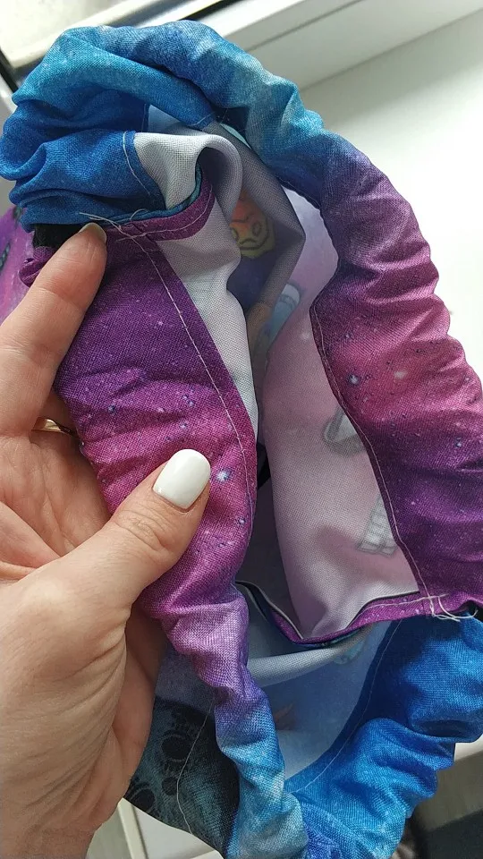 Мешок красивый, полностью соответствует фото продавца и размерам. Ткань плотная, как будет в нОске посмотрим, дочка очень довольна)