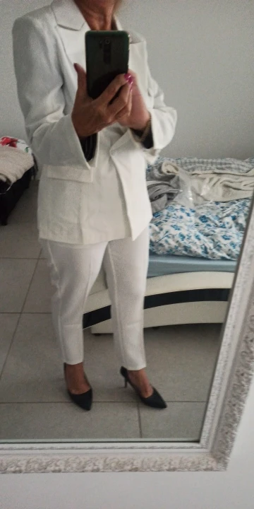 Заказала 19.06 в СПб пришёл 08.07. На мои 84-60-88 размер ХС сел в притык. Пиджак хорошо, по фигуре, облегает. Брюки сели плотно, в талии даже немного туговато.
