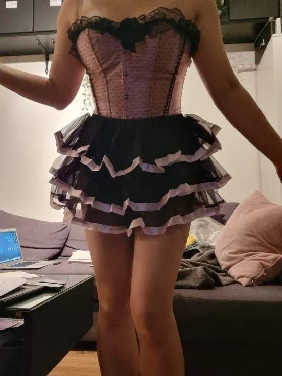 one corset top one skirt one G-string