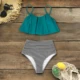 Женский купальник пуш-ап, слитный купальник с подкладкой, купальное платье, зеленое лоскутное платье для девочек, юбка с воланом, купальный ...