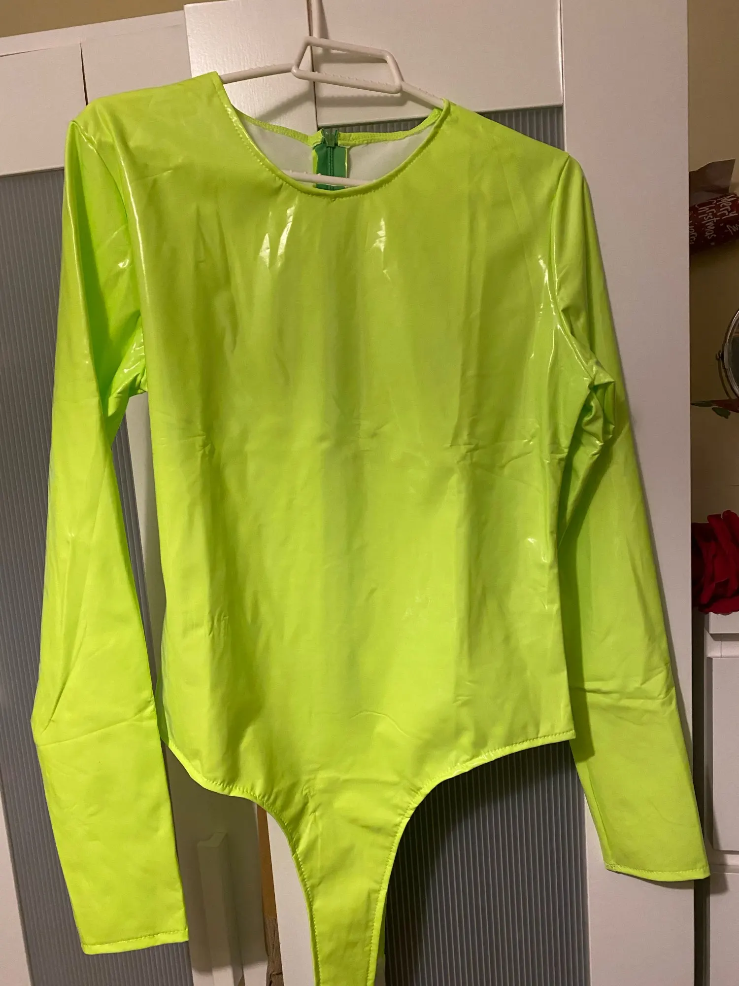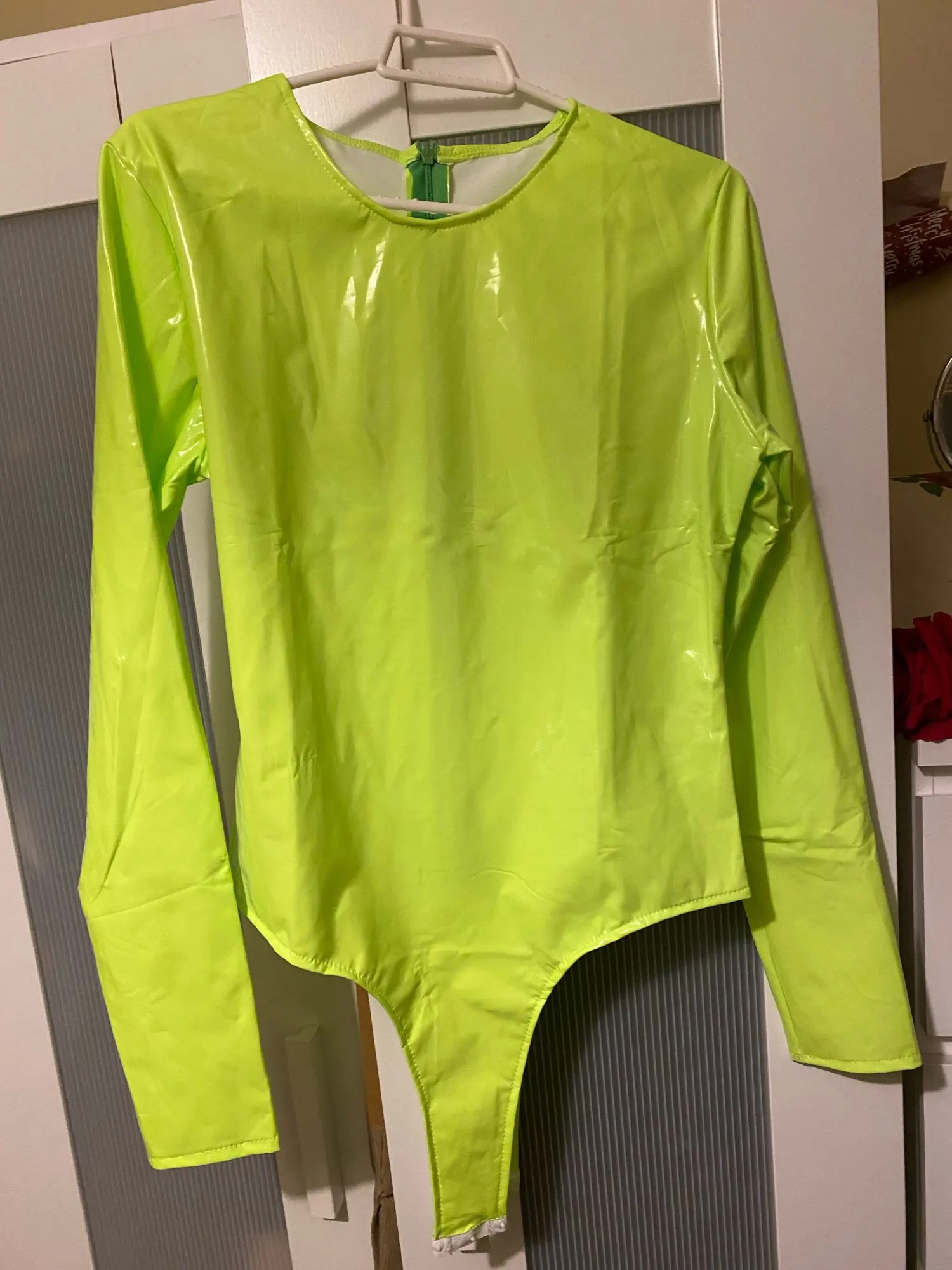 Женский неоновый комбинезон из искусственной кожи, облегающий клубный комбинезон на молнии с длинным рукавом, оранжевый, розовый, зеленый к...