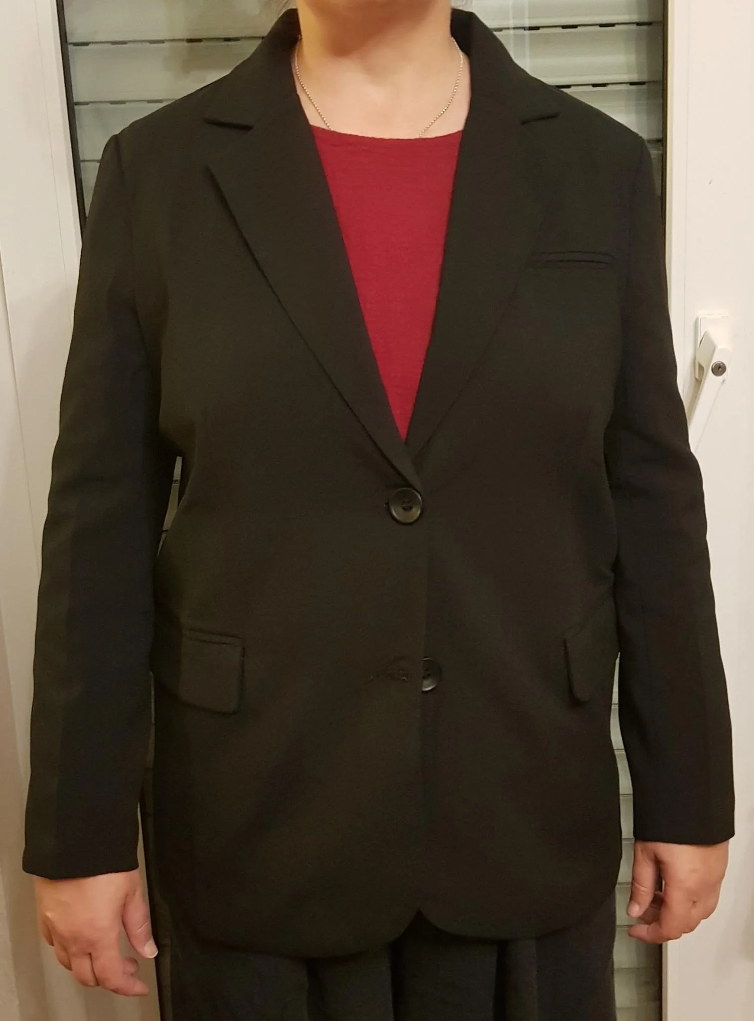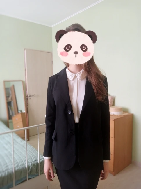 отличный пиджак! своих денег стоит, на рост 154 и вес 48 взяла s-ку, рукава в самый раз по длине, а в целом на мне сидит как оверсайз) то что надо в общем. очень понравился!