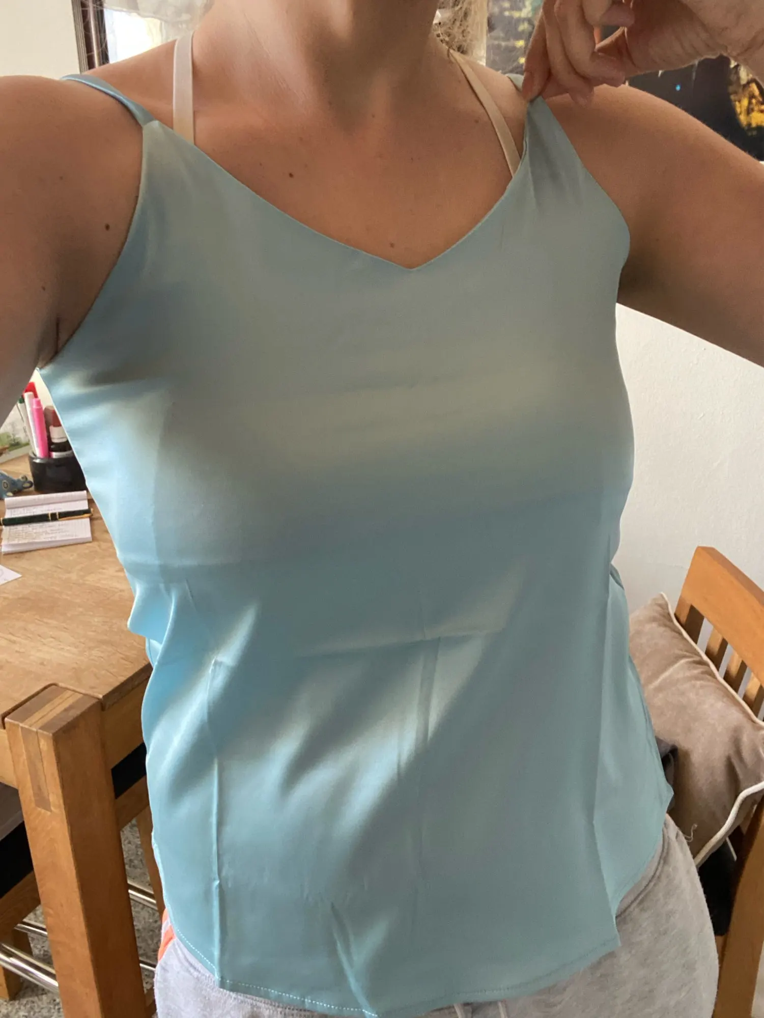 Топ очень красивый и размер указан верно, но безумно электризуется. У меня зимой сразу прилипли волосы, а после снятия топ лип ко всем поверхностям. Абсолютная синтетика.