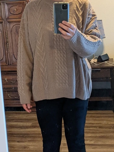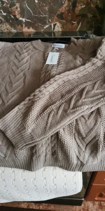 Свитер пришёл в Петербург очень быстро, за 8 дней. Всё, как на фото, супер оверсайз. Приятный к телу, у меня размер 46, на мне свитер огромный, но я такой и хотела. Спасибо продавцу!!!!