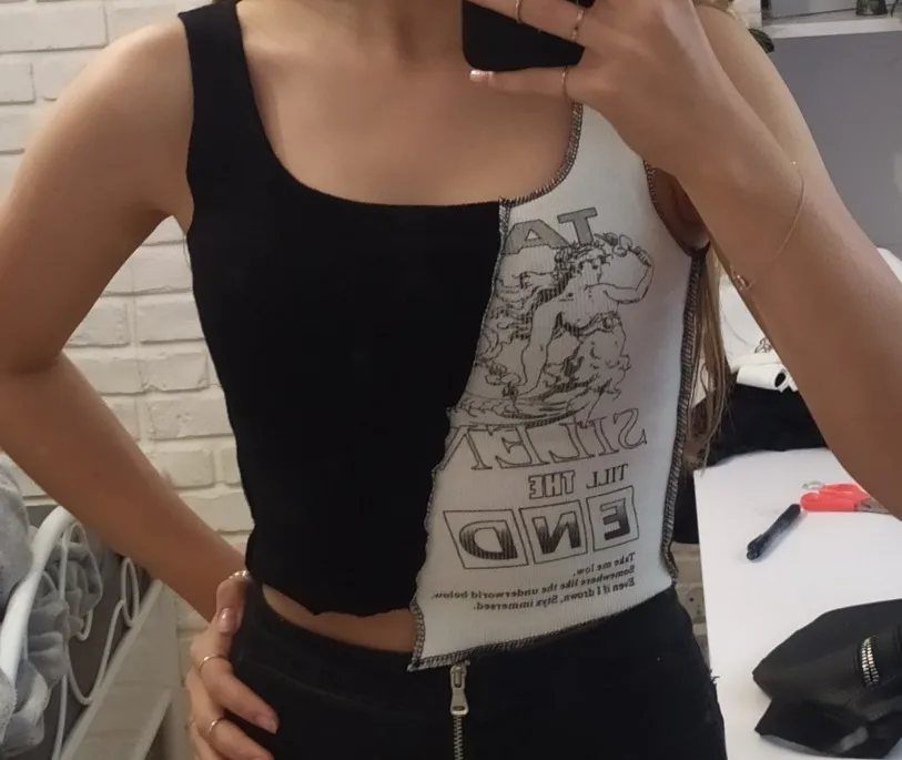 Женский укороченный топ в стиле панк, модный топ в стиле пэчворк с надписью и графическим принтом, уличная одежда без рукавов с цветными блокировками