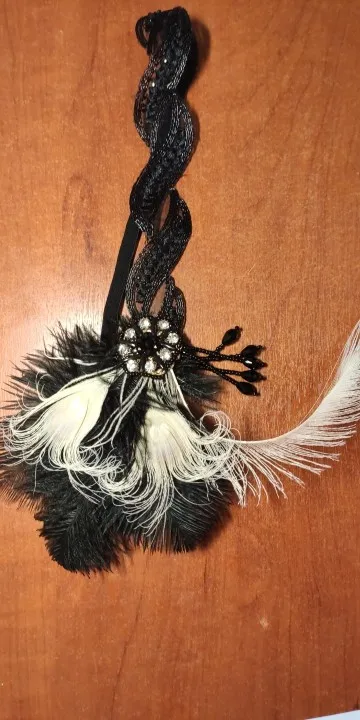 1920s Headpiece Feather Flapper Headband Great Gatsby Headdress Vintag