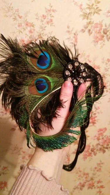 Женский винтажный головной убор 1920-х годов, украшение для волос с перьями, украшение для волос