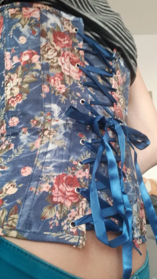 Женский винтажный корсет из джинсовой ткани, винтажный корсет с цветочным принтом, сексуальное нижнее белье, корсет синего цвета