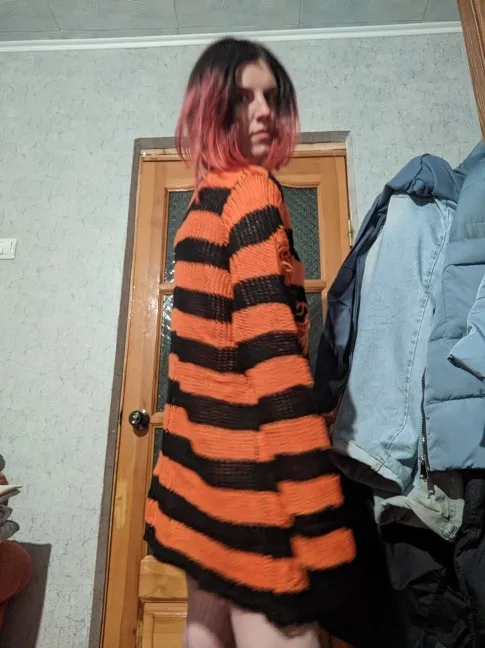 Женский вязаный свитер в стиле гранж, готический длинный пуловер в полоску, свободный тонкий свитер в стиле панк, шикарная уличная одежда