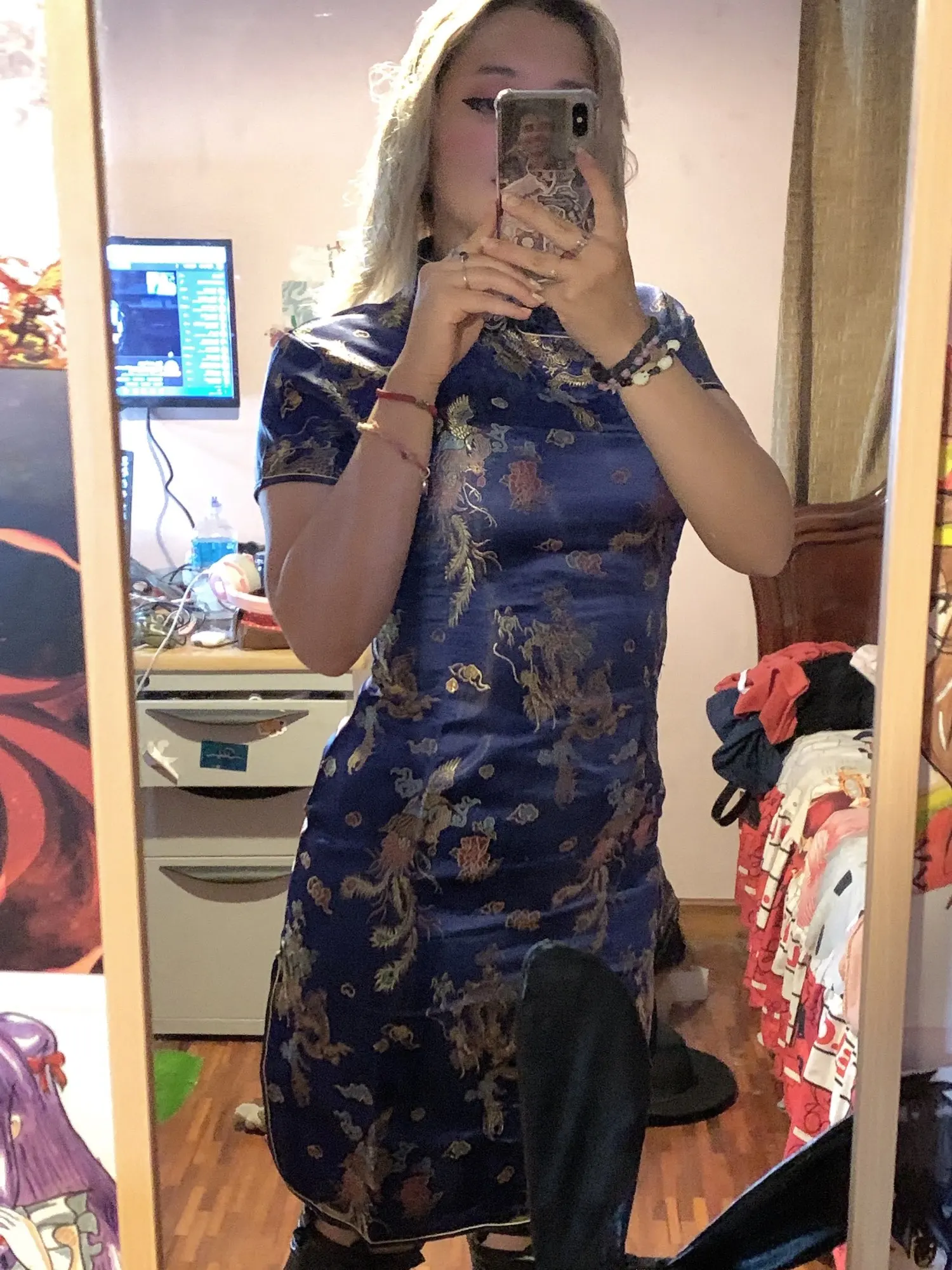 Заказала М, боялась, что маломерит. Можно было и S взять. Запас на талии есть)) но ничего страшного, с золотым ремнем смотрится нормально.