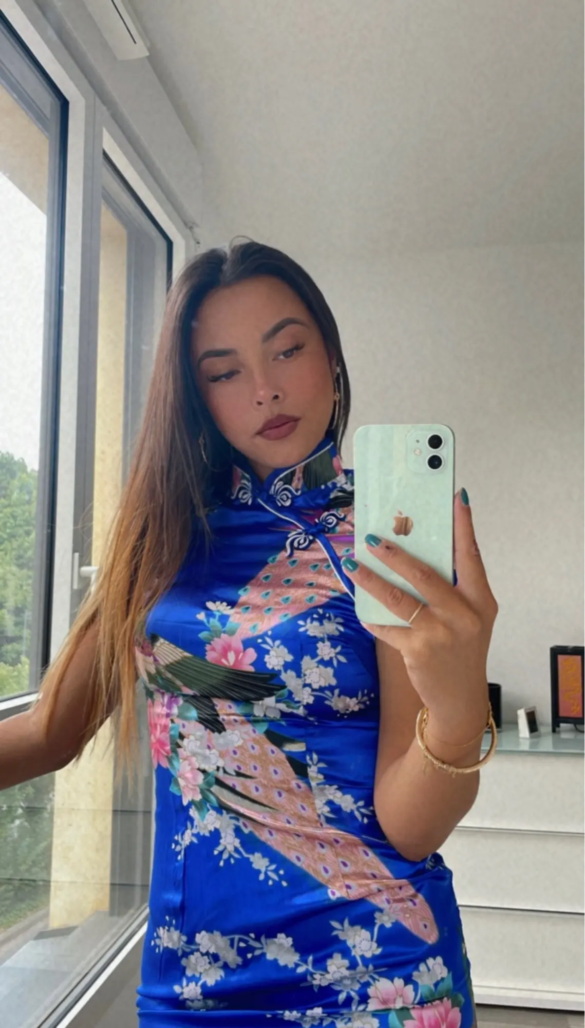 На 46-48 село идеально, конечно не шёлк, но выглядит красиво, цвет яркий, описание точное