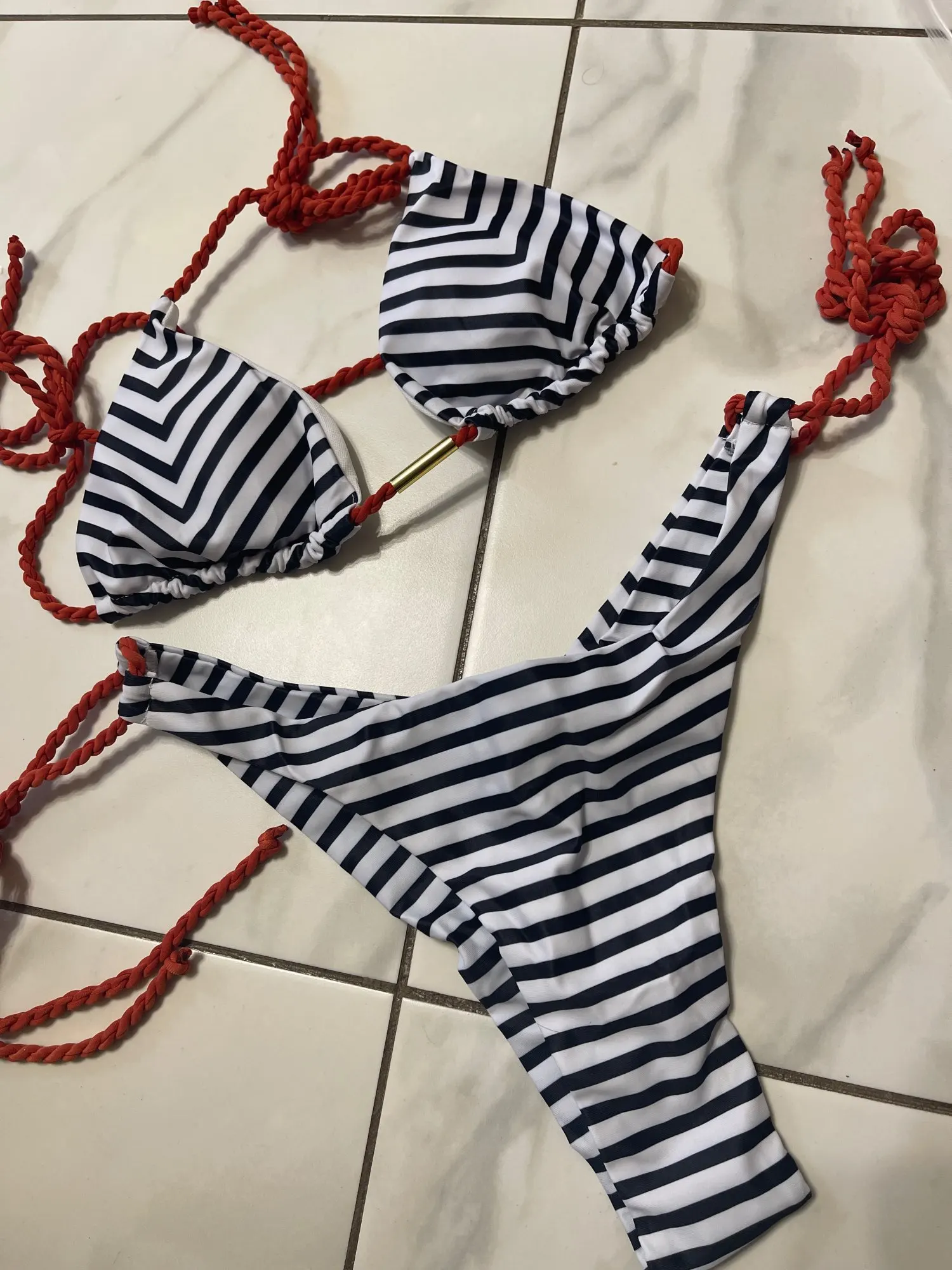 Доставка 1,5 месяца. Купальник хорошего качества. Заказала L на русский 42. Не пожалела. Трусы регулируются, а в груди М был бы уже мал точно