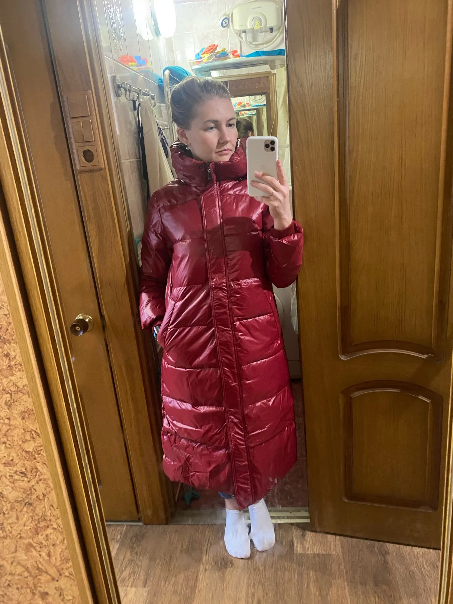 Пуховик отличный! Цвет красивый, на улице смотрится ещё лучше) на размеры 97-75-105 размер сел, как хотелось, чтобы можно было надевать кофты под низ и было бы свободно!) длина рукава на рост 167 см самое то! В СПб в - 5 градусов (а с нашей влажностью это примерно -10 гр) на тонкую кофту не замёрзла! На другой день при сильном зимнем ветре и дожде пуховик не промок, всё выдержал, не продувало!! Фурнитура хорошая, замок открывается- закрывается хорошо, клепки тоже нормально работают! Пух практически не лезет, за неделю использования видела только 2 пёрышка) Дошла посылка в Питер за 3 недели, получила в Пятерочке) В общем, рекомендую) Спасибо продавцу!!