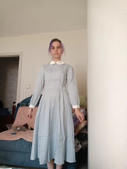 Платье красивое, из качественной ткани. Цвет как на фото. Только с размером прогадала, немного маленькое
