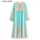 Женское длинное платье с цветочным принтом, розовое этническое пляжное платье в стиле бохо на шнуровке с V-образным вырезом и длинными рукавами