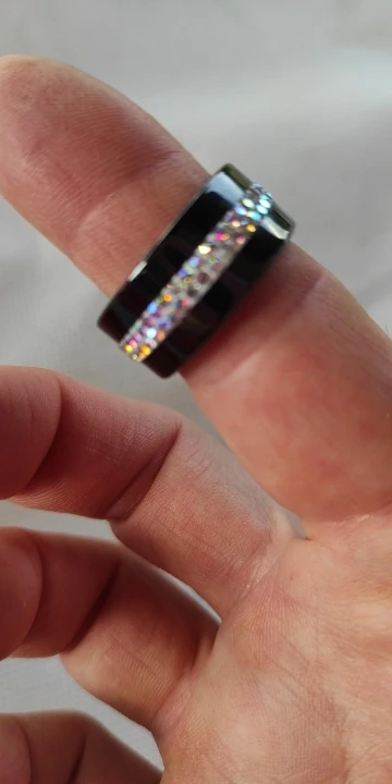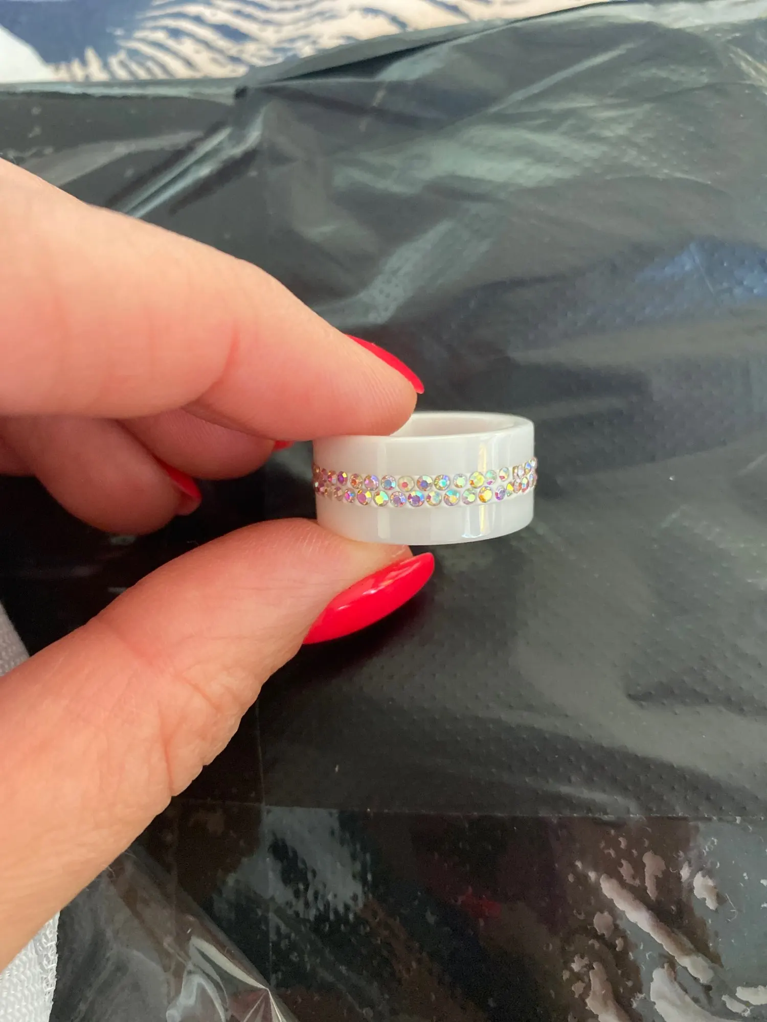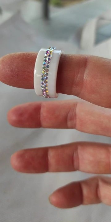 Black and White 2 Row Crystal Ceramic Ring